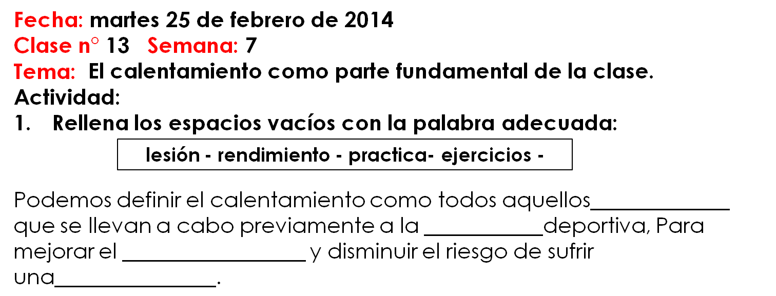 Tema: El Calentamiento: su importancia en la clase de Educación Física.